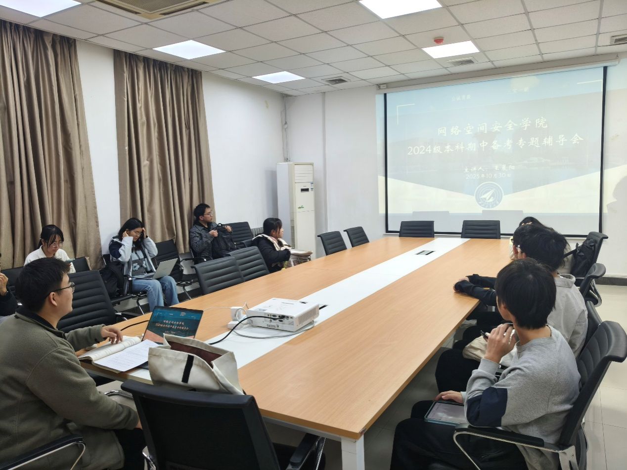 在期中考试来临之际,为帮助学生高效复习、巩固所学,充分发挥“网小安”朋辈导师团榜样引领作用,网络空间安全学院于10月30日在学院245会议室举办了期中考试专题辅导会。本次辅导会特邀我院2024-2025年度国家奖学金获得者、2022级本科生王晨阳担任主讲导师,与在场同学分享了宝贵的备考经验,现场交流深入,气氛热烈。