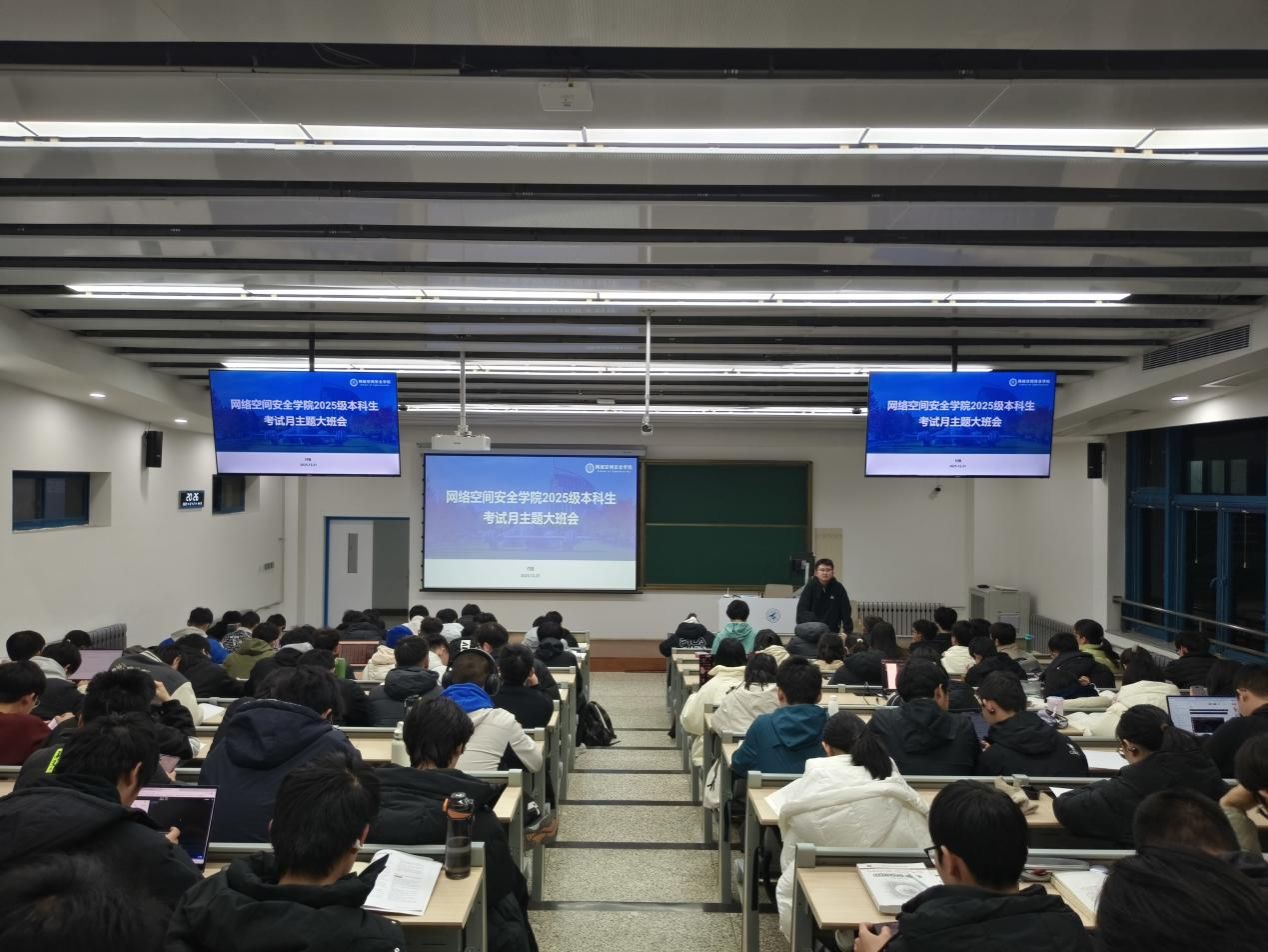 12月21日晚,网络空间安全学院2025级本科生考试月主题大班会于教西B2-201教室顺利召开。本次大班会由年级辅导员付强主持,旨在助力2025级本科生明确期末复习方向、强化考试纪律意识、提升安全防范意识,以良好的状态迎接期末考试。