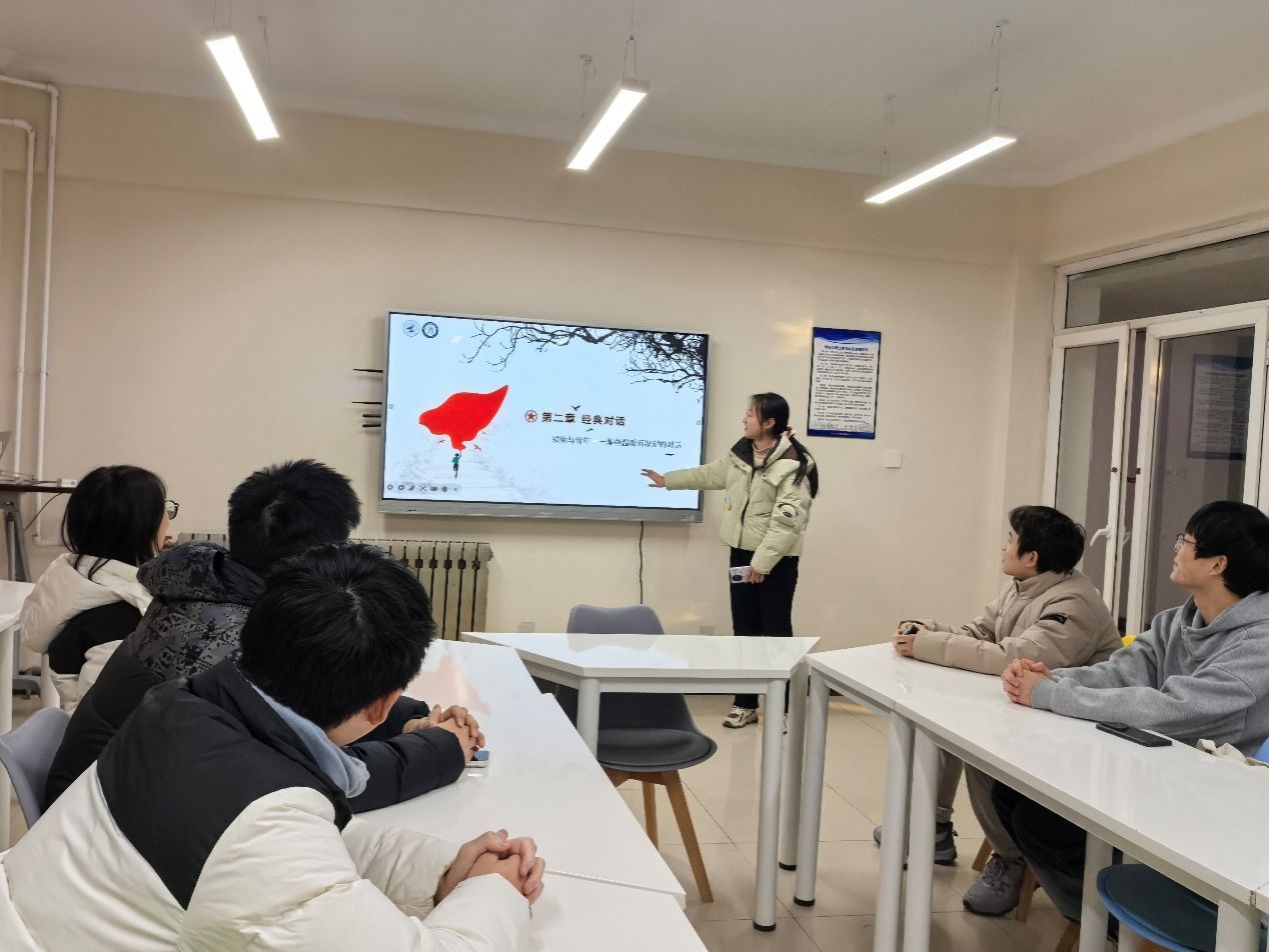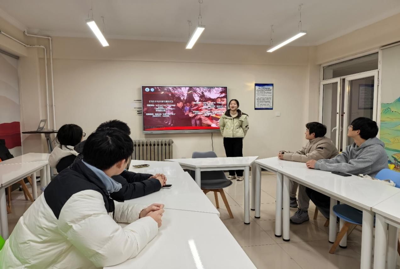 徐心悦以青年视角,与大家分享交流《习近平与大学生朋友们》一书。她结合书中原文片段,从青年成长、价值追求与奋斗方向出发,和同学们一同感悟书中的思想力量,重点分享了总书记对我们坚定理想信念、练就过硬本领、投身强国建设的殷切嘱托与青春指引。