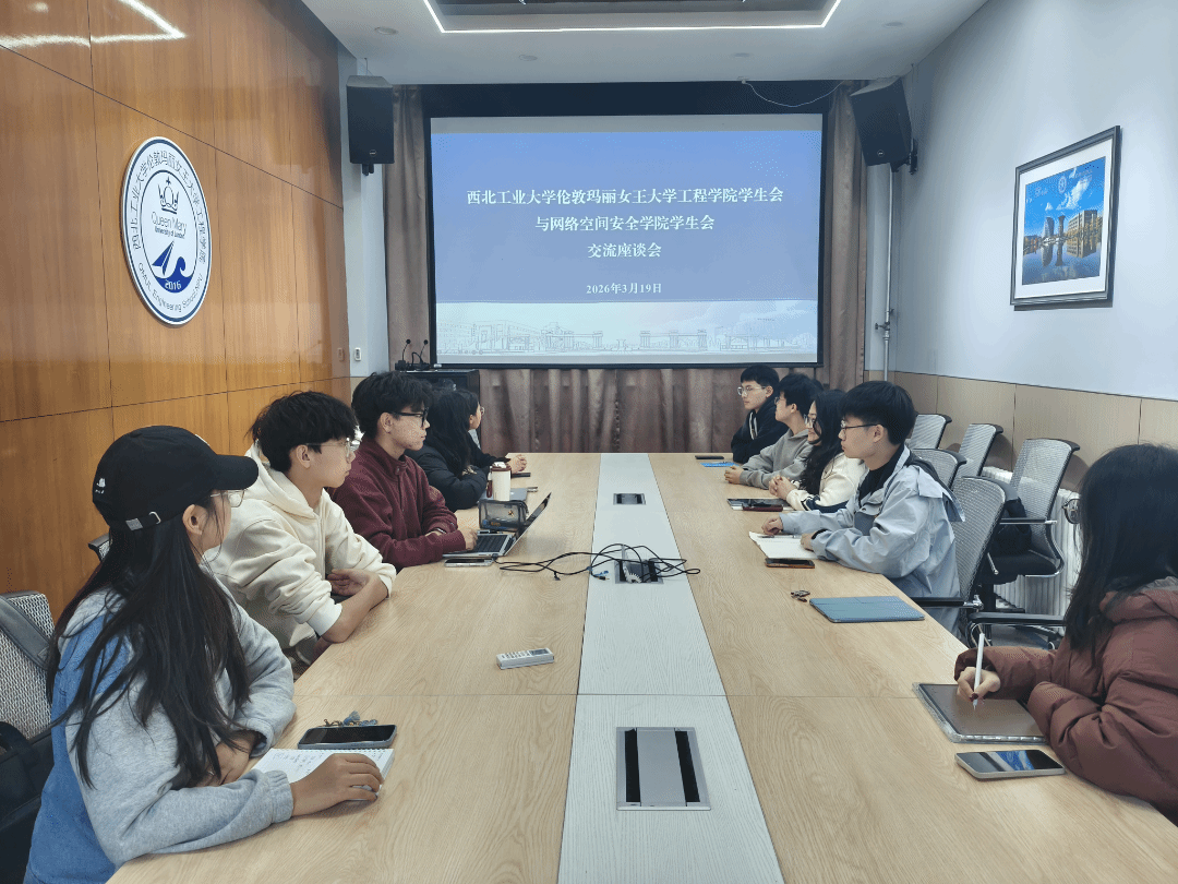 为加强学生会组织建设、提升服务同学能力,3月19日下午,网络空间安全学院学生会与西北工业大学伦敦玛丽女王大学工程学院学生会交流座谈会,在教西A座413会议室顺利开展。两院学生会主席团及各部门负责人参会。