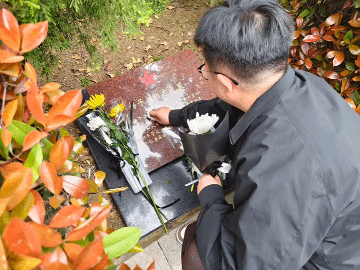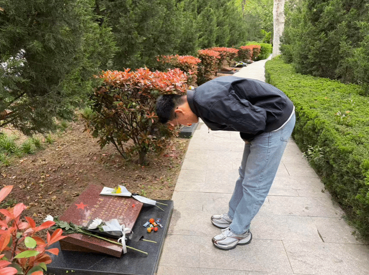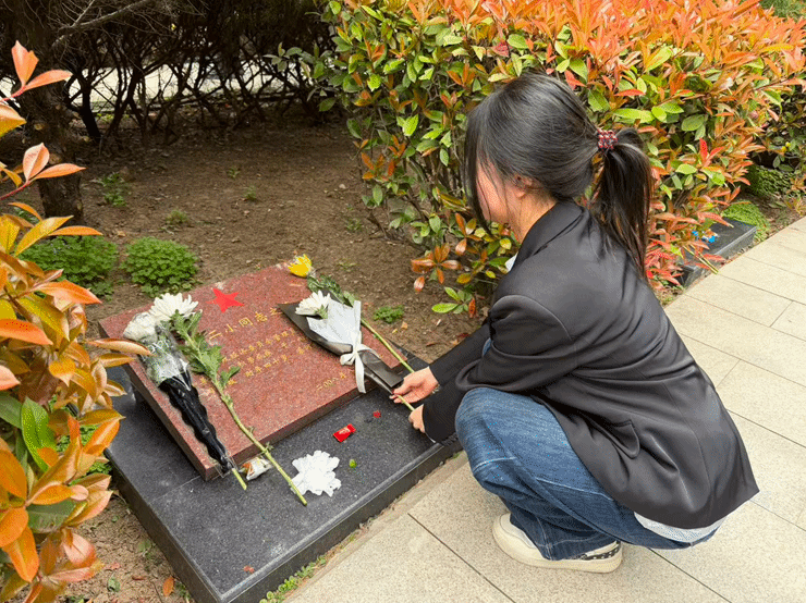 集体仪式结束后,师生们列队缓行至烈士墓区进行祭扫,大家擦拭墓碑、清理杂草,肃立碑前阅读碑文,以最庄重礼仪向英烈致以崇高敬意。