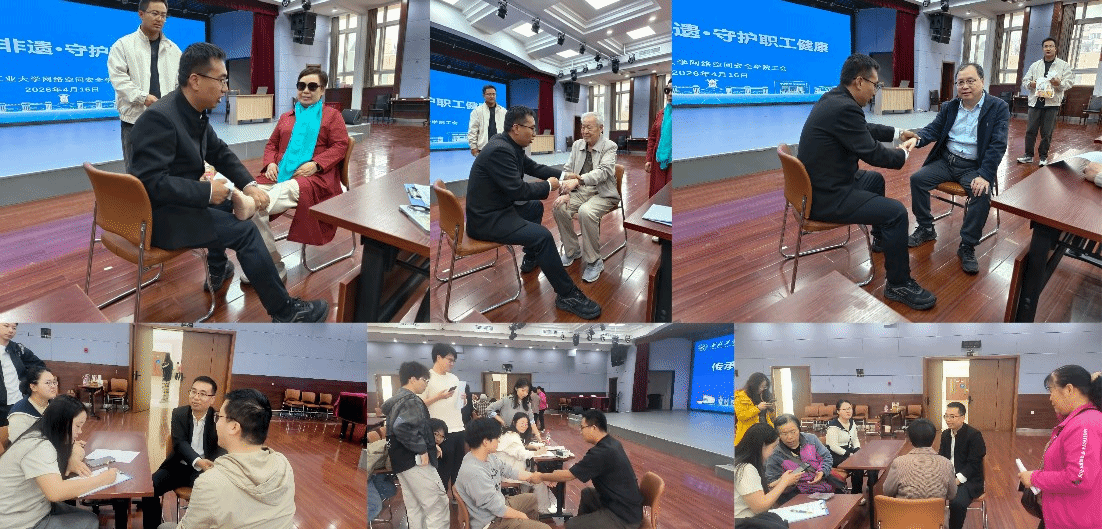 为切实关爱教职工身心健康,大力传承弘扬中华优秀传统文化,4月16日上午,西北工业大学网络空间安全学院工会在友谊校区健翔楼教工活动中心,成功举办了“传承中医非遗 守护职工健康”健康科普公益活动。本次活动特邀中医世家传人、龙门派第二十二代道医拉指诊疗传承人张佰胜医师主讲,活动吸引了学院众多师生及家属踊跃参与,现场互动积极、氛围浓厚,反响积极良好。