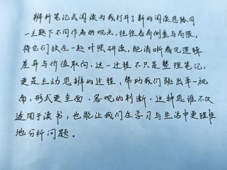 在活动的最后,同学们踊跃提笔,在便签纸上写下阅读感悟与笔记方法体会,十分钟内汇聚三十余份风格各异的辨析笔记。主持人挑选了部分笔记进行现场展示与点评,并鼓励大家让冬日里沉淀的智慧化为新岁拔节生长的养分,将辨析笔记融入日常阅读,让思辨成为习惯,让成长有迹可循。