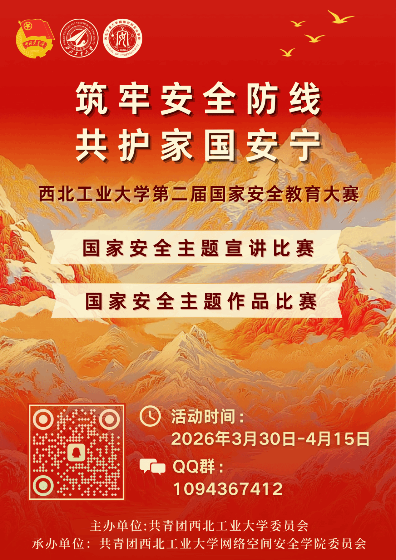 国家安全是定国安邦的坚实基石,是民族复兴征程中的稳固保障,更是人民幸福生活的有力支撑。为积极深入践行总体国家安全观,有效提升全校师生对国家安全的认知水平以及风险防范能力,在第十一个全民国家安全教育日到来之际,由共青团西北工业大学委员会主办,共青团西北工业大学网络空间安全学院委员会承办的“西北工业大学第二届国家安全教育大赛”即将开幕。