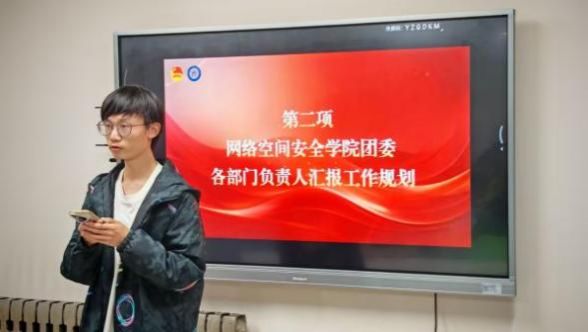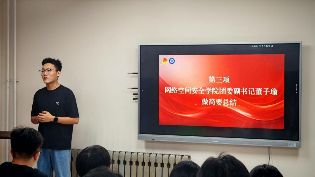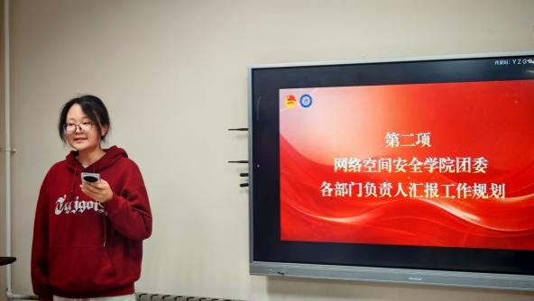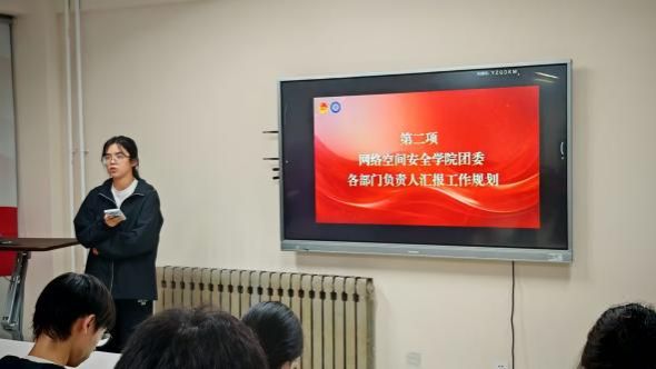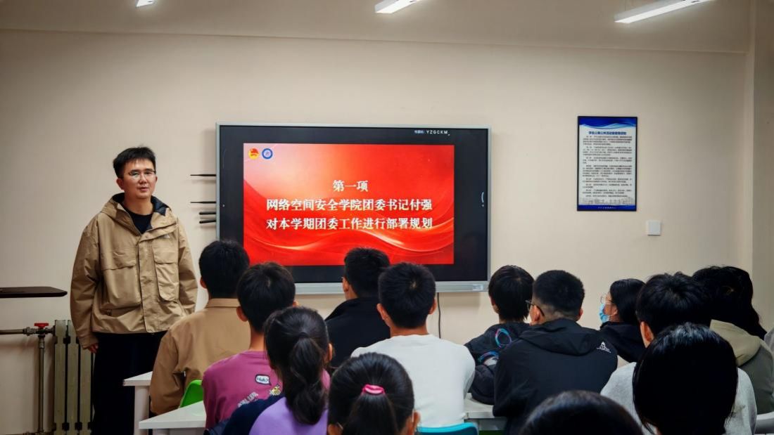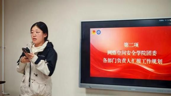 为总结工作成果、规划发展方向,进一步激发团委全体成员的青春活力,网络空间安全学院团委于2025年9月27日召开本学期第一次全体大会。网络空间安全学院团委书记付强、副书记董子瑜、各部门负责人和团委全体成员参与本次会议。本次会议由团委副书记刘逸熙主持。