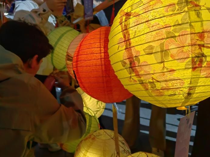 随着活动渐入佳境,现场气氛持续升温,闻讯而来的同学络绎不绝。猜灯谜区前排起了长队,同学们仰头细读灯谜,不时传出破解谜底的欢呼。摩斯密码破译区更是人头攒动,热烈的讨论声与成功的雀跃声此起彼伏。传统中秋韵味与现代科技魅力在此刻完美交融,整个场地洋溢着浓厚的节日氛围与热烈的求知气息。