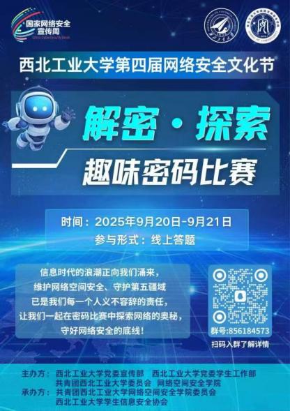 学院坚持文化育人与专业育人相结合,通过多元活动激发学生创新活力。国家网络安全宣传周期间,推出网络安全主题系列赛事,包括短视频创作、微小说撰写、知识竞答和密码挑战等四大线上活动。活动融合专业素养与创意表达,累计参与超过500人次。学生在寓教于乐的竞赛氛围中深化了对网络安全知识的理解,提升了专业认同感与实践能力。