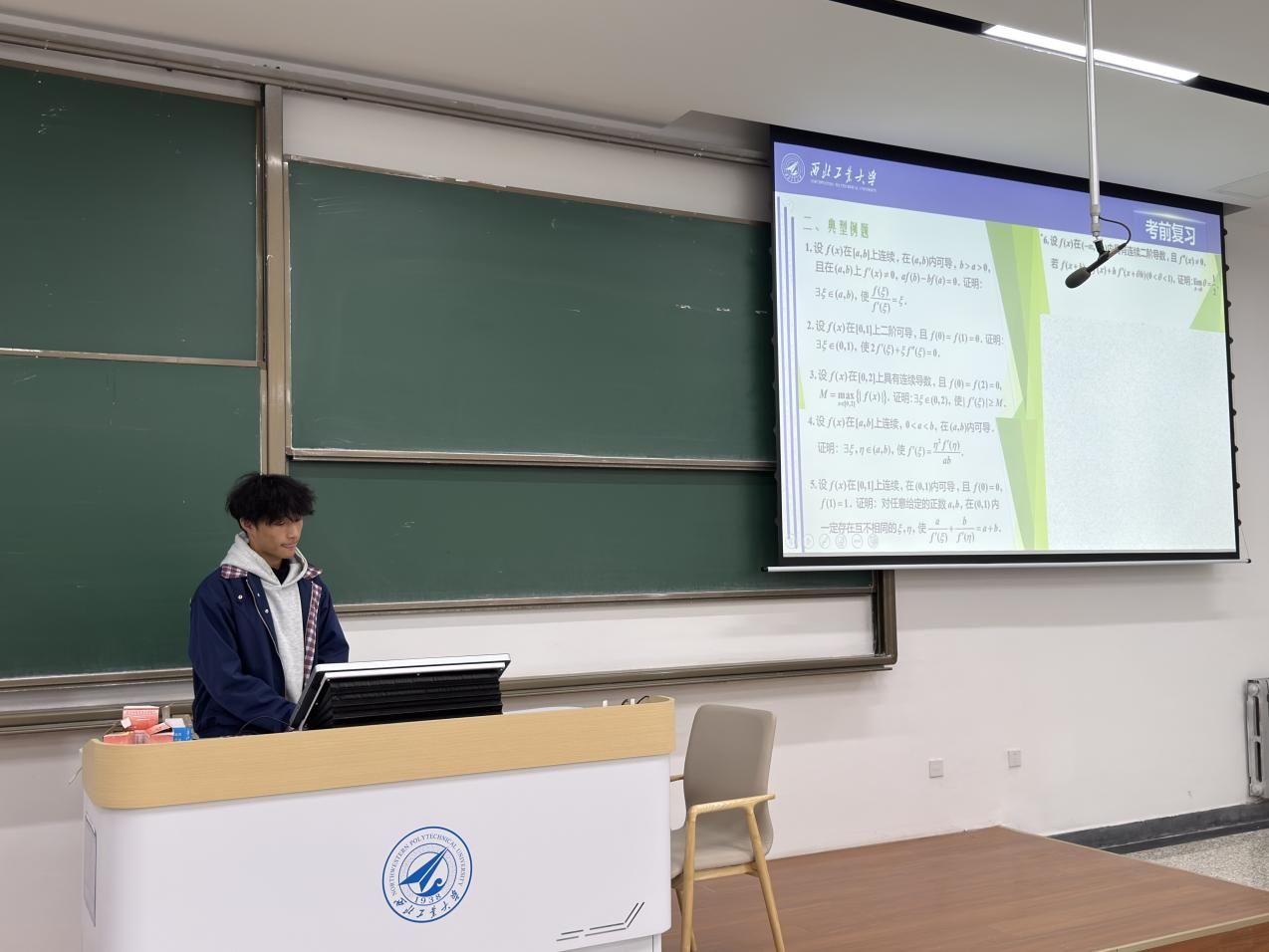 在微积分期中复习方面,满分学霸张政杰为同学们梳理了一套完整高效的学习流程。他从“课前预习-课堂听讲-课后巩固-阶段复习”四个环节入手,细致拆解每一阶段的学习重点,并强调独立思考的重要性。在重要知识点的讲解中,张政杰不仅梳理了极限、导数等核心概念的内在逻辑,更辅以典型例题进行现场解读,将抽象的理论融入具体的解题实践,帮助同学们透彻理解、举一反三,为微积分的学习指明方向。
