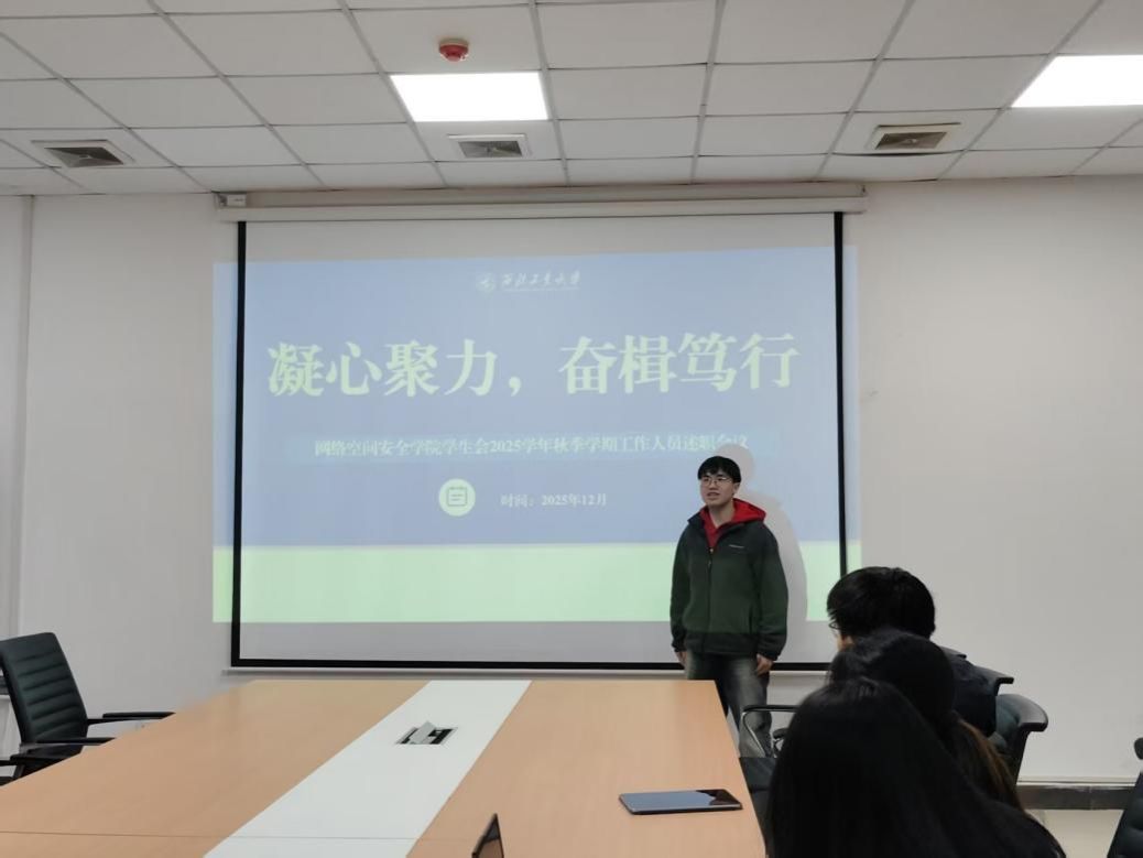 为总结年度工作、强化履职监督,2025年12月25日,网络空间安全学院学生代表大会常代会组织召开学生会工作人员述职会议。学院团委书记付强参加本次会议。